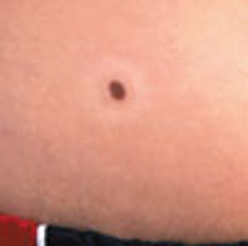 A 13-year-old girl noticed that the skin around a "mole" on her abdomen had gradually changed color. This patient was told that she had a halo nevus--a pigmented (nevocellular) nevus surrounded by a tight ring of depigmentation--which is benign and usually regresses spontaneously over time.