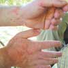 A linear, severely pruritic rash erupted on the lateral and plantar aspectsof the left foot (A) of a 72-year-old woman who had recently been campingon a Caribbean beach. Antihistamines and locally applied antifungal agentsoffered no relief.