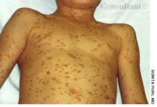 Disturbed by a pruritic rash of 5 days' duration on his chest, neck, and back, a 35-year-old man sought medical advice. The patient had no other symptoms.