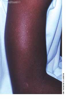 A 3-mm long, double-tipped, polypoid lesion appeared just anterior to the anus on an 8-month-old girl 2 days earlier. The lesion was excised in the office: a local anesthetic was administered, and the base was lightly electrodesiccated. Antibiotic ointment was applied until the area healed. Pathologic findings identified an infantile perianal pyramidal protrusion.