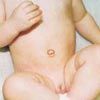 A male infant was born to a 29-year-old woman (gravida 3, para 2), following an uncomplicated pregnancy and normal vaginal delivery. At birth, a brownish 1-cm nodule was noted on the right side of the upper abdomen. The infant was otherwise healthy.