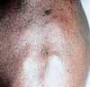 A 3-year-old girl discovered lesions on her instep and great toe, where there was significant pressure from the old rubber sandals that she had been wearing.