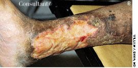 Pyoderma gangrenosum (PG) is a chronic, recurrent condition characterized by cutaneous ulceration. In half of patients, PG is associated with an underlying illness, such as inflammatory bowel disease, RA, SLE, or a lymphoproliferative disorder.