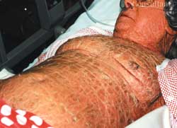 Leprosy, or Hansen disease, had recently been diagnosed in a 39-year-old man. He presented to the tropical disease unit of Harare Hospital, Zimbabwe, for follow-up.