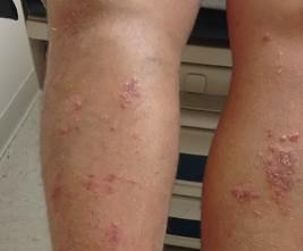 Look closely at this eruption and consider its distribution. Is the dermatology clinic seeing a "textbook" case here? What's your diagnosis?