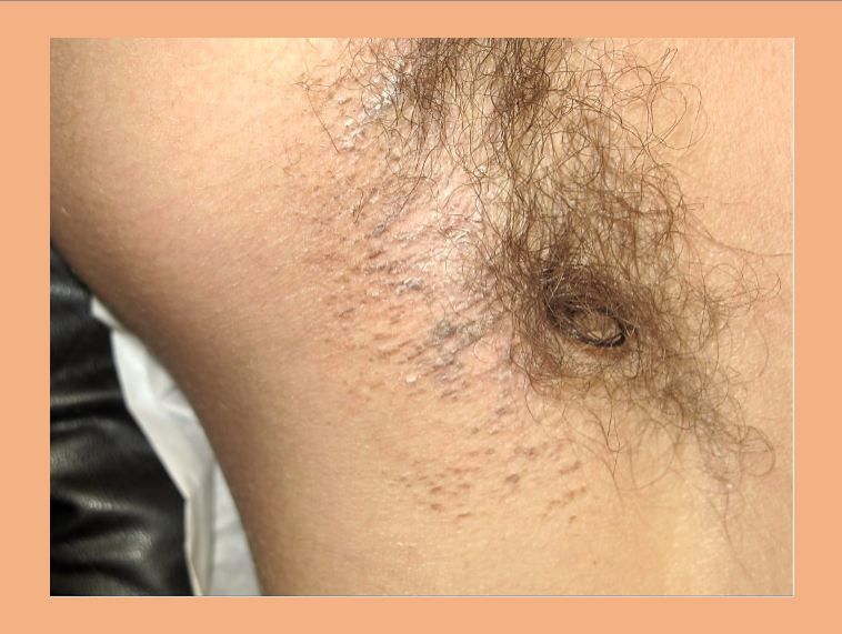 An acute outbreak on a formerly clear-complected young girl is suspicious for some notable features that are missing. Your Dx?