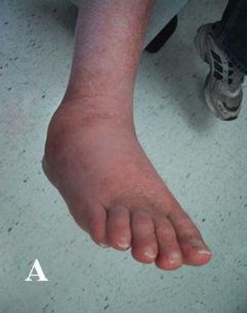 These asymptomatic plaques developed on the legs of a 59-year-old woman with diabetes mellitus and pulmonary sarcoidosis. Biopsy showed a granulomatous infiltrate of epithelioid histiocytes and multinucleated giant cells surrounded by lymphocytes “layered” throughout the dermis. What’s your diagnosis?