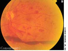 During an annual eye examination, a 65-year-old womanwith a 5-year history of type 2 insulin-dependent diabetescomplained that her vision had slightly worsened in botheyes. Her best corrected visual acuity was 20/30 in botheyes.