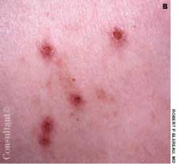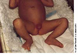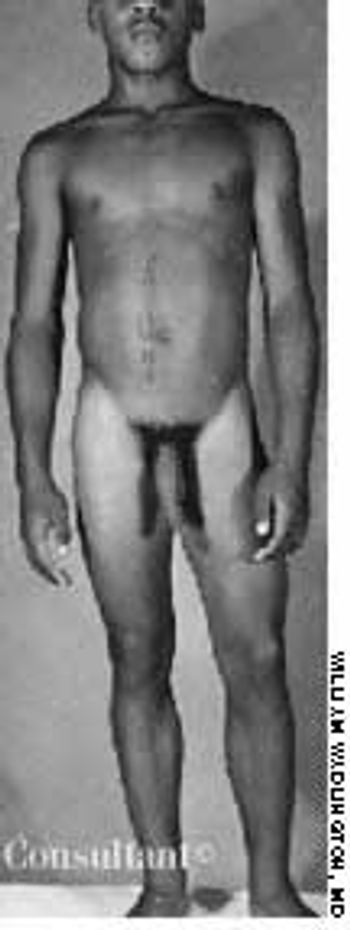 This 56-year-old man presented with a swollen face and puffy eyelids. He recently had an ear, nose, and throat evaluation for persistent hoarseness, and the findings were normal. The patient complained that he has had difficulty in lifting his head for about 4 years and was treated by a chiropractor but obtained no relief.