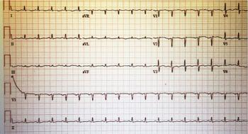 What does the office-based ECG tell you about the patient's complaint of recently worsening asthenia and dyspnea?