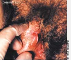 A 38-year-old man presented with a fleshy lesion beneath the tip of his penis. He had discovered it about 18 months before the initial evaluation. A second similar lesion resembling a “cauliflower” had appeared several weeks after the first. Both lesions had grown and had begun to bleed during intercourse.
