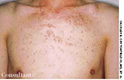 A 40-year-old womanwith HIV infection has had an occasionallypruritic facial rash for severalmonths. The rash is not associatedwith any systemic symptoms.