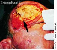 A 67-year-old woman presented with a painful genital ulcer. She denied new sex partners and previous genital lesions.