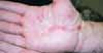 Painful, 1- to 1.5-cm macules and papules had developed on the palms and dorsal hands and wrists of a 60-year-old man 2 weeks earlier, after a deer-hunting trip. He had not seen any ticks on his skin or clothing. The lesions persisted despite self-treatment with over-the-counter topical corticosteroids. The patient had general malaise but denied fever, chills, and arthralgia. He was not taking any medications.