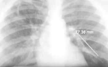 A 66-year-old man presented with weight loss for 2 months, loss of appetite for several weeks, and abnormal chest radiographic findings. He denied chest pain, cough, fever, chills, shortness of breath, and chest trauma. He was an active smoker, with a 50-pack-year history of smok- ing, and a cocaine and alcohol abuser. His history included treatment of hypertension for 10 years and treatment of pulmonary tuberculosis 14 years previously.