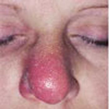 The nasal cellulitis that affects this 39-year-old woman began as right intranasal folliculitis. Because the patient was sensitive to many antibiotics, oral ciprofloxacin was prescribed.