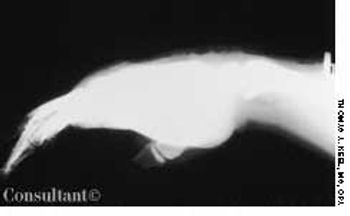 A 22-year-old soldier's left hand, wrist, and distal forearm were crushed by an object that weighed 90.8 kg (200 lb). There were no signs of open fracture; soft-tissue injuries were obvious. No neurovascular deficit was discerned in the limb.