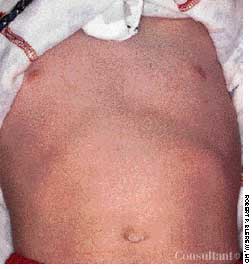 A 71-year-old man, who had recently returned from a month in Europe, complained of left lower leg swelling and pain of 1-week's duration. For many years, this obese patient had chronic venous insufficiency of both legs and chronic osteoarthritis of the knees that severely limited his ability to walk. The patient was admitted to the hospital with extensive cellulitis of the left lower leg.