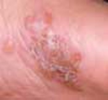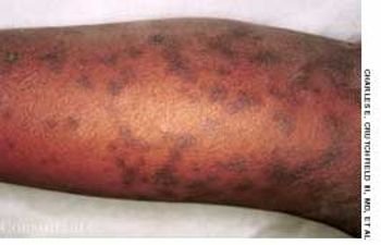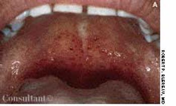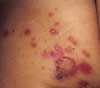 An 11-year-old boy presented to the hospital with a 3-day history of maculopapular rash over the face, trunk, and extremities. He had completed a 5-day course of trimethoprim-sulfamethoxazole for otitis media 1 week before presentation. His medical history was otherwise unremarkable. Over the past 3 days, the rash had become pruritic and the lesions progressively larger. Some lesions were vesicular and bullous. There was diffuse involvement of the oral mucosa, conjunctivae, and genitalia.