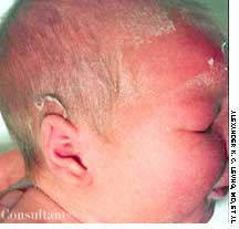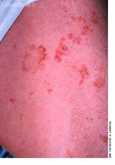 A 29-year-old man presented with a complaint of venereal warts and a long history of mild psoriasis, which he had treated with fluocinolone. He returned 3 months later complaining of chest congestion of 10 days' duration; it had been treated with ciprofloxacin at an urgent care facility.