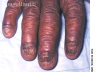 A variety of rheumatic diseases-systemic lupus erythematosus (SLE), rheumatoid arthritis (RA), and the vasculitides among them-manifest as “lumps, bumps, and holes” involving the extremities. Each of these diseases works through specific mechanisms on different structures of the skin to produce a distinctive pathology. In doing so, each provides clues to the cause, which the history and physical examination can help confirm.