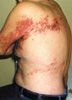 A 79-year-old man presents to theemergency department with a painfullesion on his right forearm. Three daysearlier, he had scratched his arm whileremoving crabs from a trap. Initially,the scratch had bled slightly, and hehad self-treated with an over-the-counterantibiotic ointment and an adhesivebandage.
