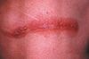 A 33-year-old active-duty soldier who had been in Iraq for 6 months presented with a depressed lesion on his left lateral elbow of several months’ duration. It was neither healing nor enlarging. (The yellowish tint to the skin in the photograph was from a topical iodine solution.)