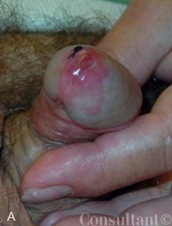 An uncircumcised 58-yearold man presented with a persistent “rash” on his penis of 5 years’ duration. He complained of localized irritation with coitus. Over-the-counter ointments and corticosteroid preparations had failed to clear the eruption. The patient had hypertension, hyperlipidemia, and coronary artery disease. He had been monogamous for the last decade and denied any risk factors for sexually transmitted diseases.