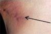 This was presumed to be an ectoparasite bite when the patient reported that she had a new pet kitten. A myriad of diagnostic possibilities exist, including the start of a drug eruption or viral infection, early allergic contact dermatitis, or first manifestation of an autoimmune bullous disease.