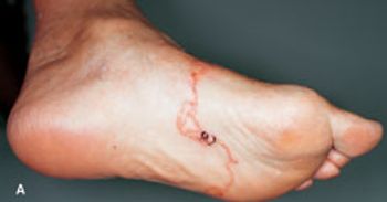 A 69-year-old man with stage II chronic kidney disease due to hypertension fell from his bicycle and presented to the emergency department (ED) with abrasions, ecchymoses, and a 3-cm laceration on his right leg. The patient was an avid cyclist. His wounds were cleaned and the laceration sutured. There were no fractures, and the patient was discharged home.