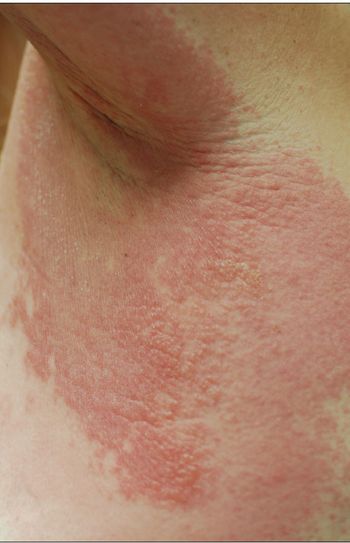 This pruritic eruption appeared on the arms, thighs, and buttocks of a 28-year-old woman after the uneventful delivery of her second child.