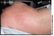 A 73-year-old man was admitted to the hospital with pain in his hands, feet, and elbows. The patient, an alcoholic, had a 20-year history of hypertension and diabetes. Deformities of the hands and feet had developed during the past 5 years. Tophi were present over both ear lobes. The serum uric acid level was 15 mg/dL.