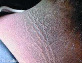 A 62-year-old woman with a 25-year history of dyspnea was hospitalized because of hypoxemia. The dyspnea had become more severe during the past few years; it was worse in the standing position, was not exacerbated by walking, and was immediately relieved on lying down. She had no seasonal variation or environmental trigger of the dyspnea.