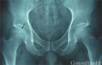 Pain in the right hip that had gradually worsened within the past month prompted a 42-year-old man to seek medical attention. The pain was aggravated by lifting the right leg and by walking; it was relieved by ibuprofen. The patient denied recent trauma, fever, overexertion, numbness, leg weakness, and back pain. He had had a discectomy for a herniated lumbar disk several years earlier. There was no history of sickle cell disease or allergies. He reported occasional alcohol use.