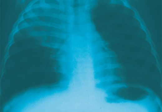A 61-year-old man with arthritis and an 80-pack-year smoking history presented with fever, dyspnea, and productive cough of a week’s duration that did not respond to outpatient treatment with levofloxacin.