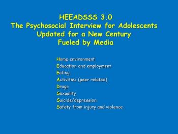 The HEEADSSS psychosocial interview is a comprehensive aid to help discuss with adolescents social and emotional aspects of life that may impact physical health.