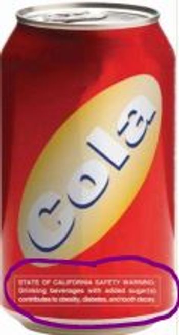 California has introduced legislation that would require cigarette-package-type warnings on containers of sugary soda. Tell us what you think about the move.