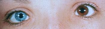 This 20-year-old woman has one blue and one brown iris. To what genetic disorder might this finding point?