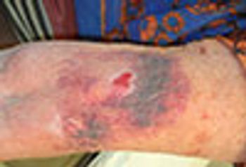 These wounds occurred when this 77-year-old woman fell when chasing her dog. Such wounds-a combination of ecchymoses and erosion caused by blunt and sheering forces on fragile skin-are common in the elderly, even after relatively mild trauma. Simple interventions will promote healing.
