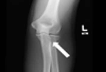 FOOSH injuries associated with acute onset of pain at the elbow suggest fracture of the radial head, proximal ulna, or humeral condyle or soft tissue injury.