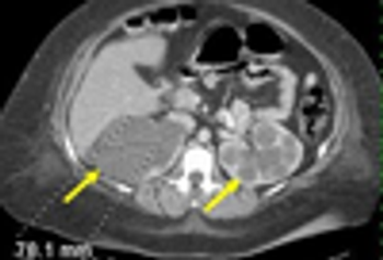 Autosomal dominant polycystic kidney disease (ADPKD) is common. Presenting symtpoms include hypertension, hematuria, proteinuria, and renal insufficiency.