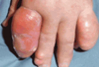 Skills quiz: Psoriasis; Molluscum; Lhermitte-Duclos; Gout