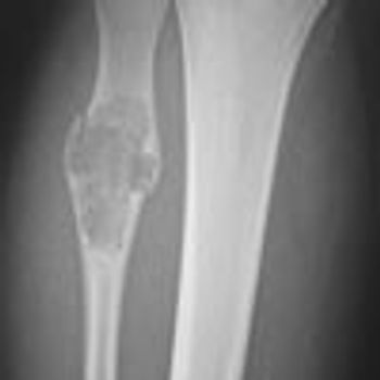 Right lower leg pain prompted a 15-year-old boy to seek medical attention. An hour earlier, he had fallen on the leg during a football game and on standing had heard a "pop." No gross abnormality was noted. Jack-Ky Wang, MD, and Laurie Meng, PA-C, of Palos Heights, Ill, report that radiographs revealed a transversing pathologic fracture through an expansile lytic lesion of the right fibula.