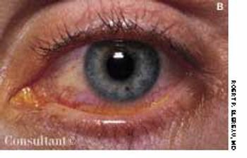 The mother of a 5-year-old girl who was frightened by the appearance of a flat “freckle” in her daughter's eye (A) was reassured by the diagnosis of a benign conjunctival nevus.