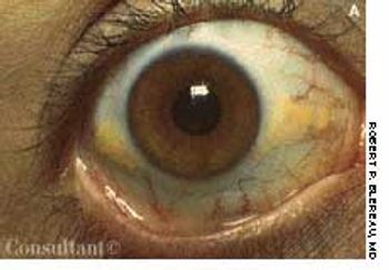 Pingueculae-yellow lipid deposits-may develop on the bulbar conjunctiva after several years of exposure to drying, dust, and the UV rays of sunlight. They represent elastotic degeneration of the substantia propria and are not seen in infants or children. These lesions usually are evident on the nasal aspect of the conjunctiva; they are innocuous and require no treatment.