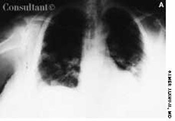 A 49-year-old woman, severely obese but otherwise healthy, appeared for a preemployment medical examination. She neither smoked cigarettes nor drank alcohol. She had no respiratory problems and recalled no family history of such. A baseline mammogram taken 4 years earlier showed no abnormalities, and the patient was not under care for any medical condition. Results of physical examination were normal, except for the obesity-which made it difficult to determine breast masses with confidence.
