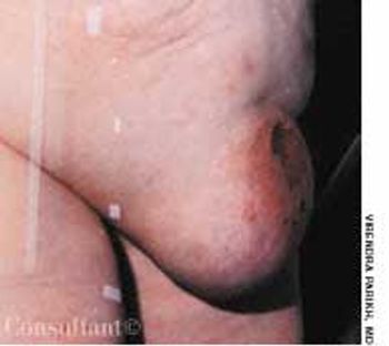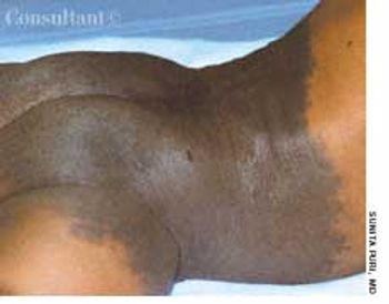 The mother of this 5-month-old boy was concerned about the large birthmark in the infant's diaper area. This lesion is a bathing trunk congenital melanocytic nevus, writes Dr Sunita Puri of Decatur, Ala.
