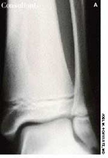 A 15-year-old boy had been experiencing pain in his distal left leg for 7 months. There was mild swelling, and an x-ray film of the lower leg revealed a sharply marginated, vertically oriented, tubular lucency in the metaphysis of the tibia (A). There was no cortical destruction, periosteal reaction, or pathologic fracture. An MRI at high field strength was performed to narrow the differential diagnosis.