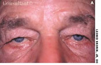For 1 month, a 25-year-old woman had experienced discomfort in and around the left eye and diplopia. She was in good health; she reported no weight loss, excessive nervousness, heat intolerance, decreased strength, changes in the texture of hair or skin, or altered bowel habits. There was no personal or family history of goiter or other thyroid disease.