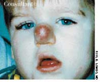 This 3-year-old child was brought to our ear, nose, and throat clinic for evaluation of the nasal mass that had developed over the previous few months, reports Dr Paul E. Lomeo of Muskegon, Mich. The youngster was known to have congenital problems, including cardiac, renal, and craniofacial anomalies. There was no identified syndrome associated with his health.